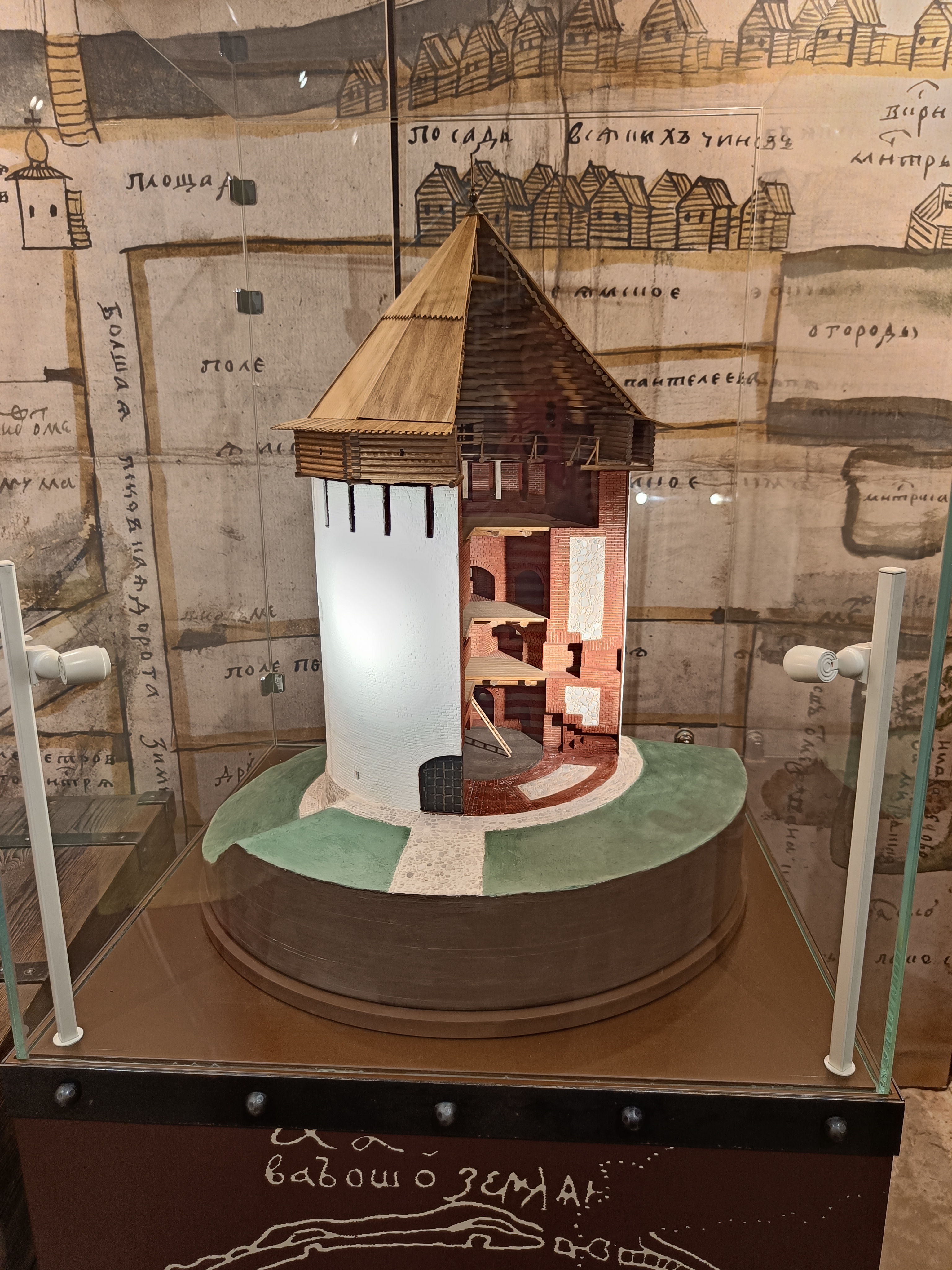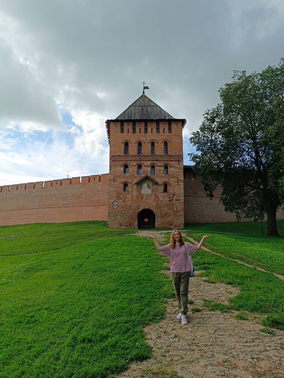 Мы стоим не месте внешней стены, на месте которой сейчас находится прогулосная дорожка.